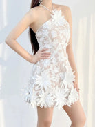 Elevate your event style with the Trend4us Luxe 3D Floral Appliqué Halter Mini Dress. Designed with a sheer mesh overlay and nude lining, this mini dress features intricate embroidered florals and bold 3D appliqué details at the neckline and hem. The halter tie and hidden zipper ensure a flattering, secure fit, while the sculpted silhouette adds a couture touch. Available in White, Blue, and Fuchsia—perfect for parties, weddings, and special occasions.