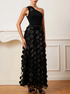 Step into the spotlight and captivate the crowd with the Trend4us Luxe One-Shoulder 3D Appliqué Maxi Dress!