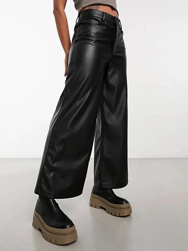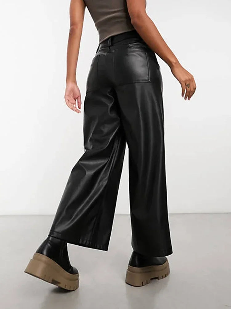 Trend4us Modern Wide-Leg Faux Leather Pants
