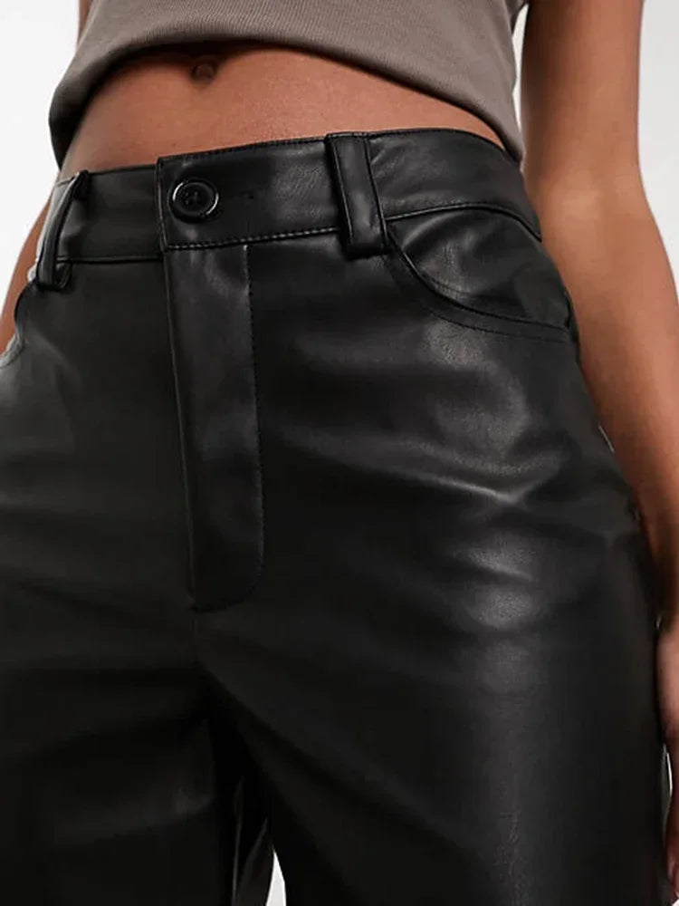 Step into effortless edge with the Trend4us Modern Wide-Leg Faux Leather Pants. Featuring a flattering high-rise waist and a relaxed wide-leg cut, these pants offer a bold silhouette with everyday comfort. Crafted from soft faux leather with a structured drape, they pair effortlessly with cropped tops, knits, or boots for an elevated streetwear look.