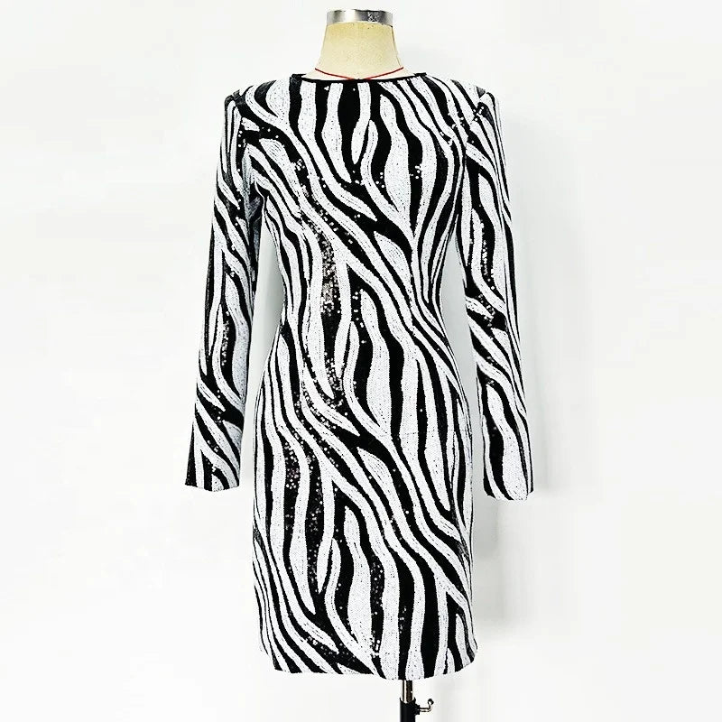 Trend4us Sequin Zebra Print Long Sleeve Mini Dress