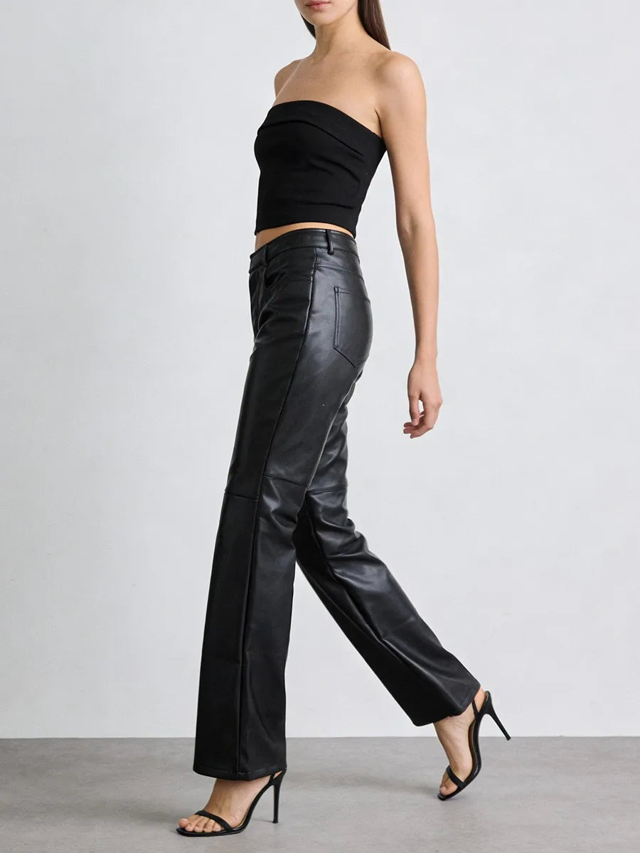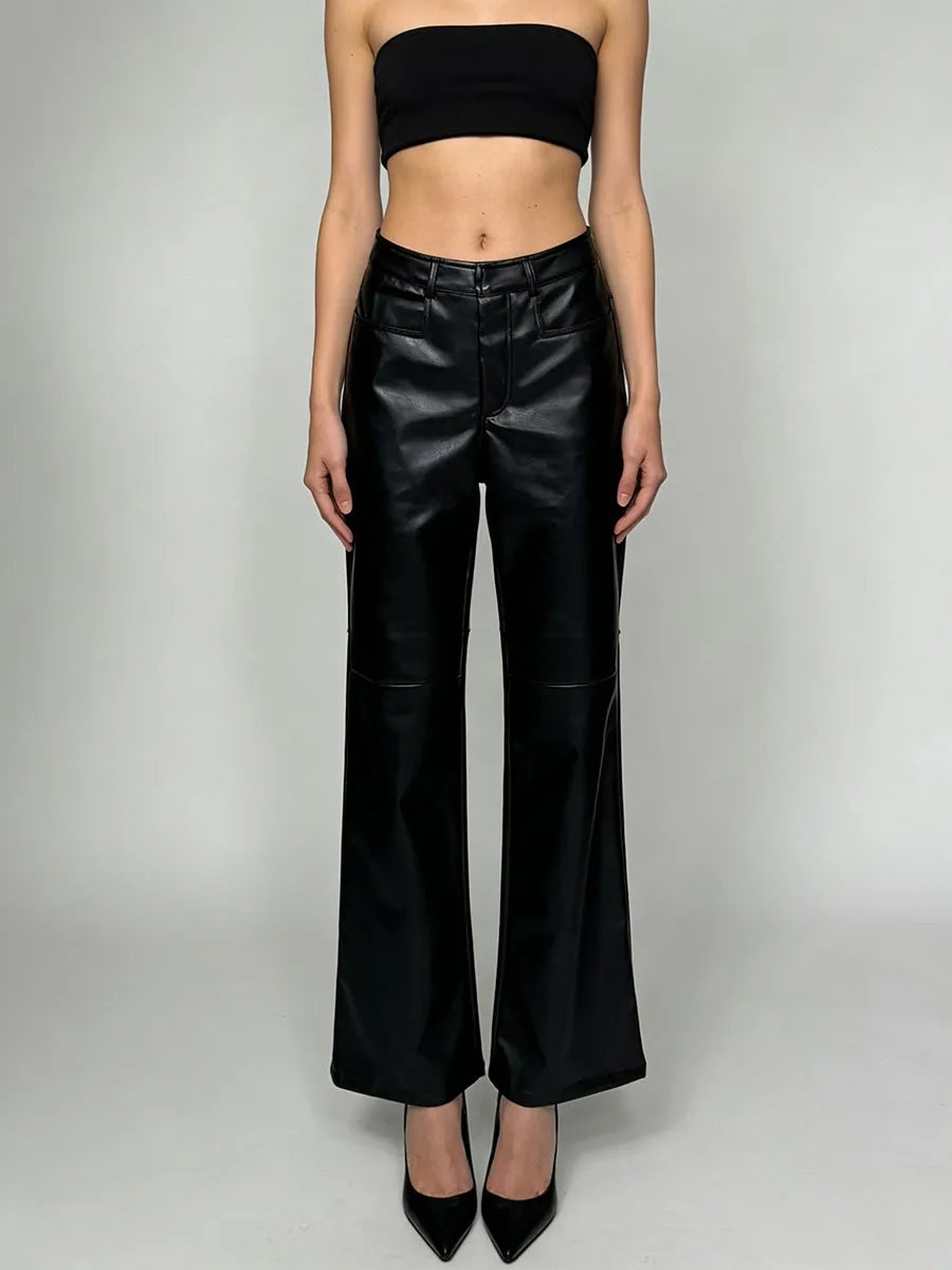 Trend4us Sleek High-Waisted Faux Leather Straight-Leg Pants